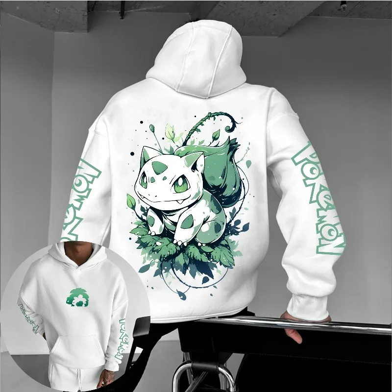 Una bellissima felpa bianca a tema Pokemon, principalmente raffigura uno degli starter più belli mai creati, Bulbasaur.