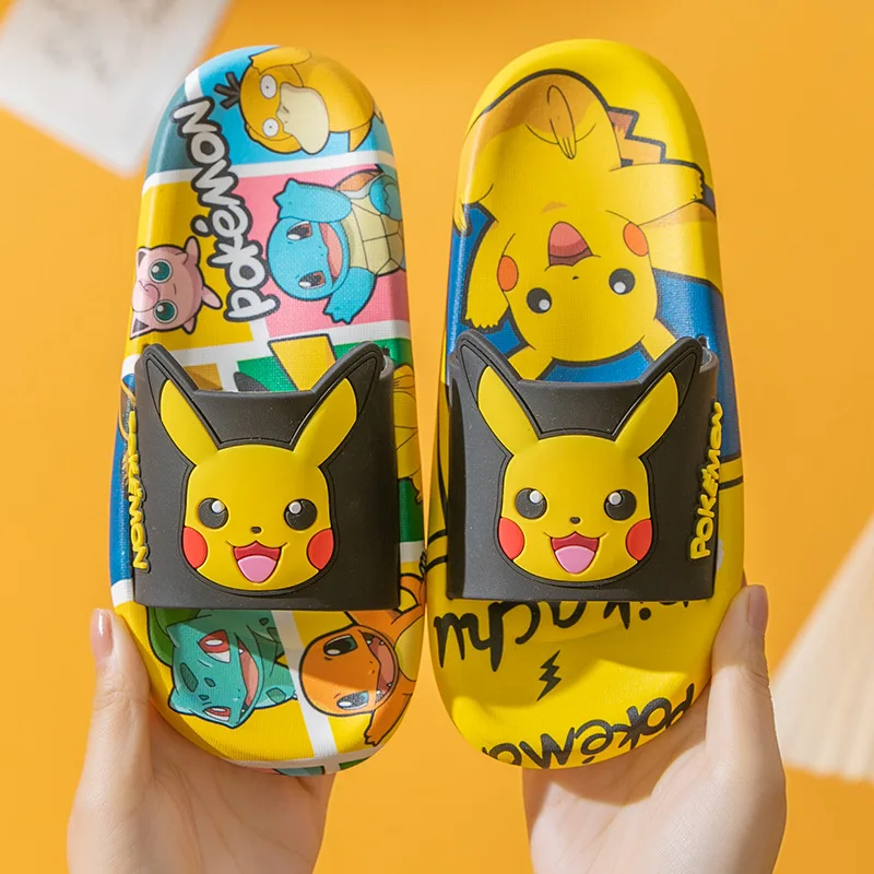 Le ciabatte hanno la particolarità di essere diverse tra sinistra e destra, sulla sinistra è presente sempre Pikachu nella sua interezza mentre sulla destra sono riportati anche altri Pokemon noti.