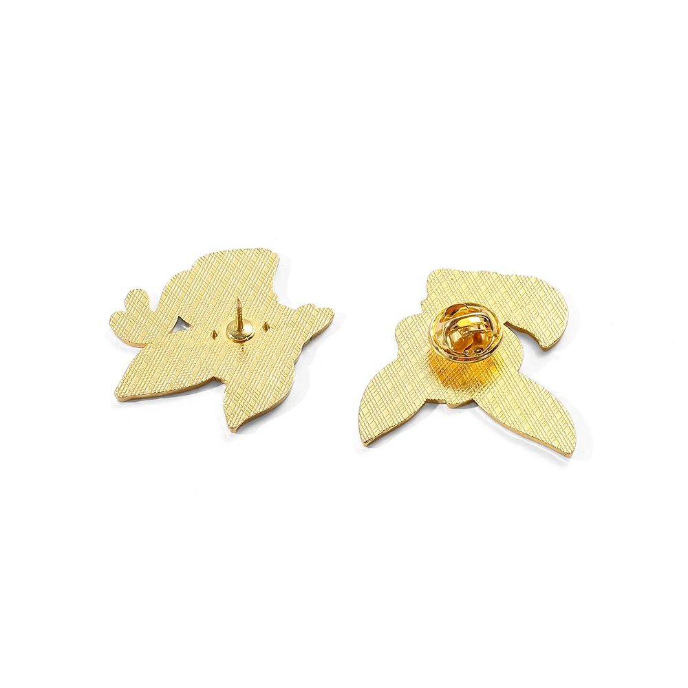 Composto da metallo base + smalto (enamel pin) con attacco posteriore (pin + chiusura).