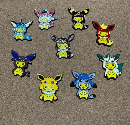 Un set da 9 pezzi (9 pz) in cui Pikachu indossa i costumi di ciascuna delle evoluzioni di Eevee: tipicamente Eevee, Vaporeon, Jolteon, Flareon, Espeon, Umbreon, Leafeon, Glaceon, Sylveon.