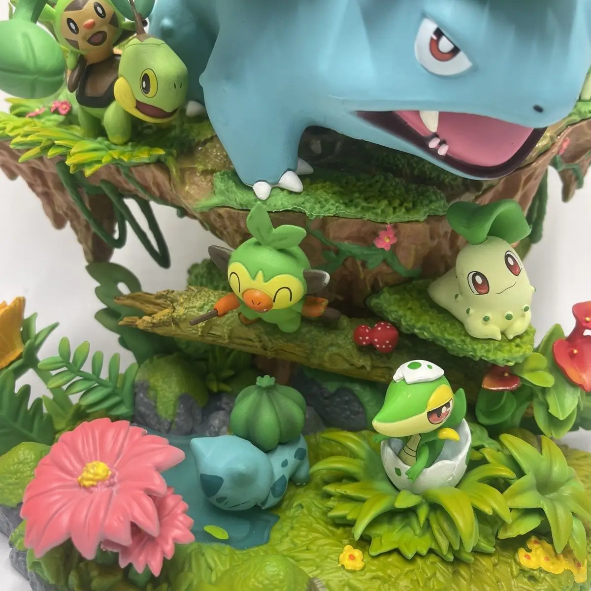 Stupenda action figure che raffigura molti Pokemon erba in un paesaggio conforme rispecchiando il loro tipo