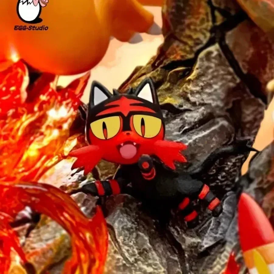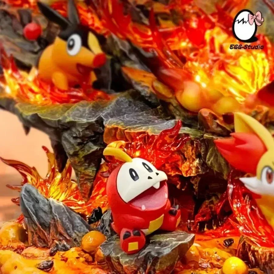 Stupenda action figure che raffigura molti Pokemon fuoco in una roccia lavica infuocata che rispecchia il loro tipo