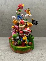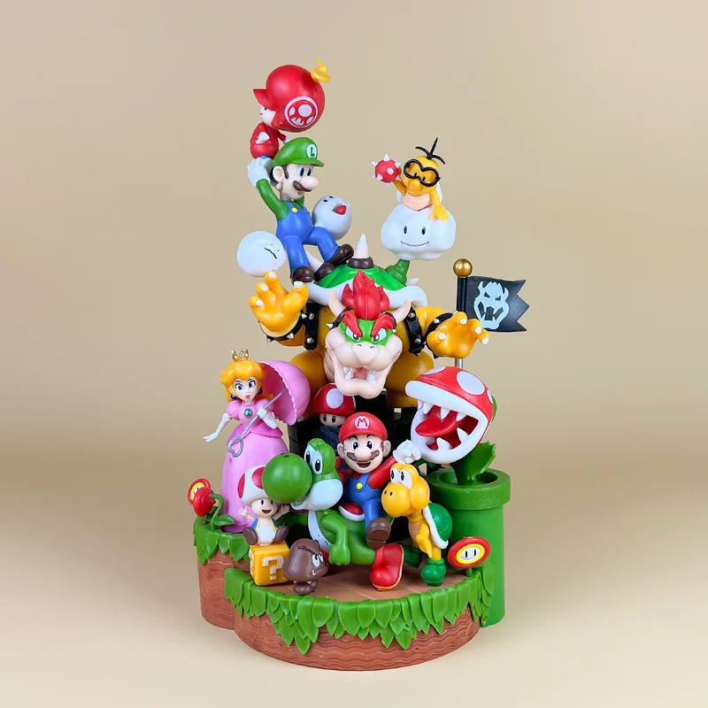 Un’icona statua in cui tutti molti dei personaggi principali della saga di Super Mario Bros sono uniti insieme