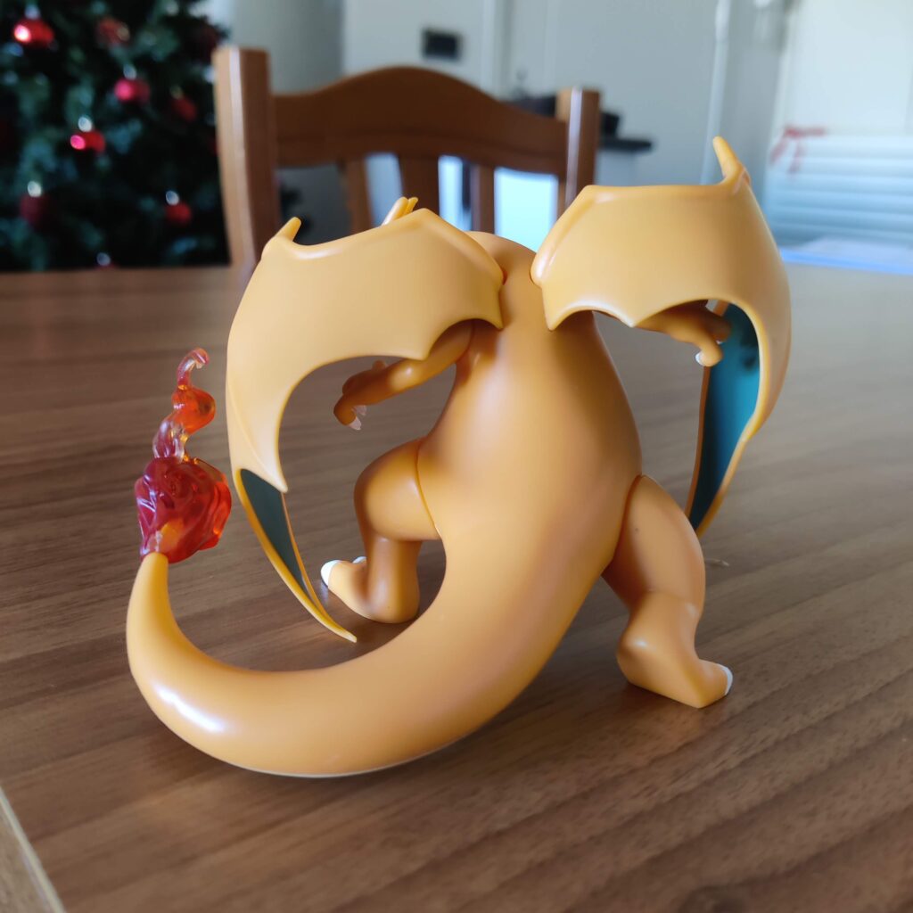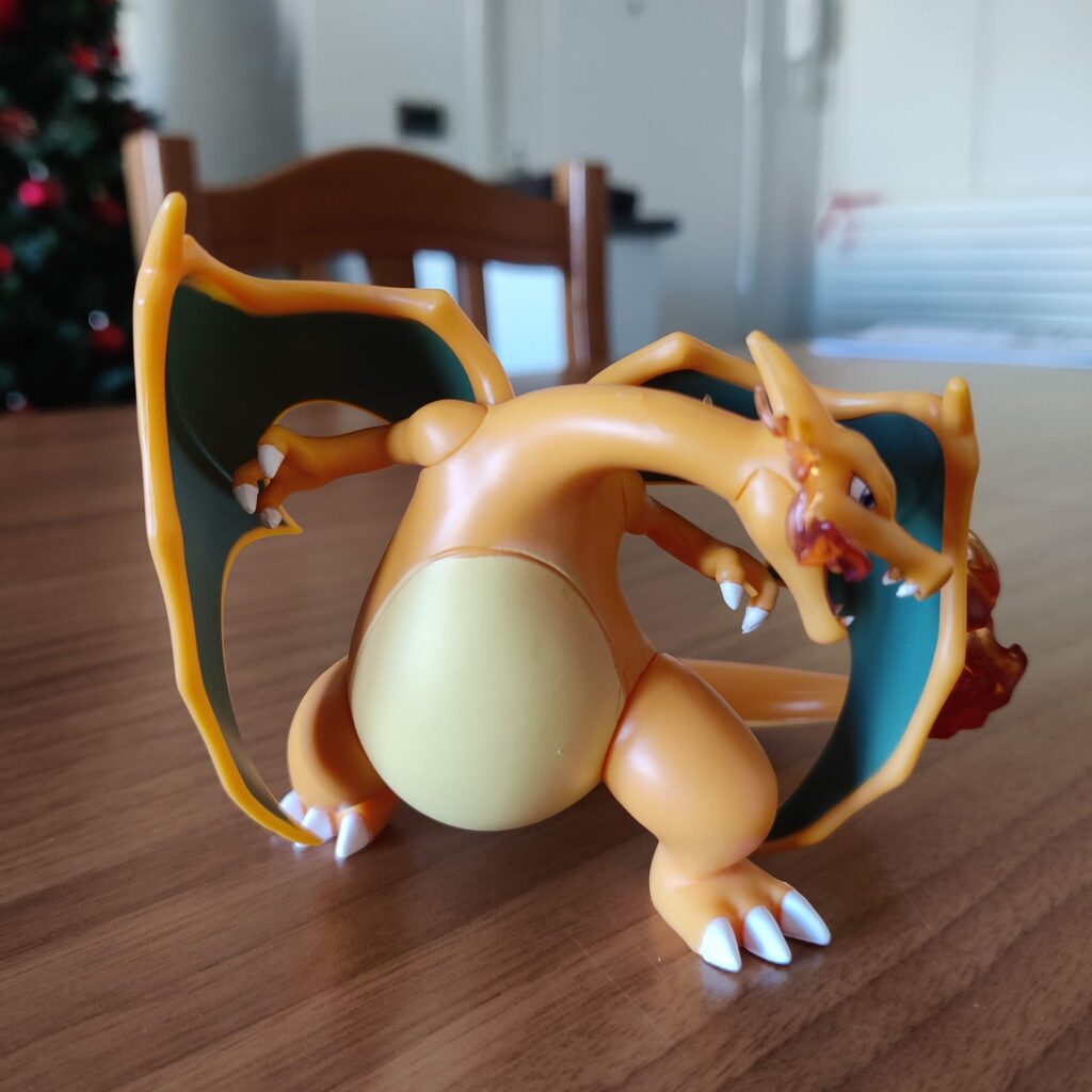 Questa figura di Charizard prodotta da GK è un ottimo esempio di come si possa avere un pezzo iconico, ben fatto e dal grande impatto visivo senza spendere una fortuna. Alta 12 centimetri (misura testa-corpo), cattura perfettamente l’essenza del Pokémon drago-fuoco: imponente, aggressivo e fedele al design classico del Pokédex.