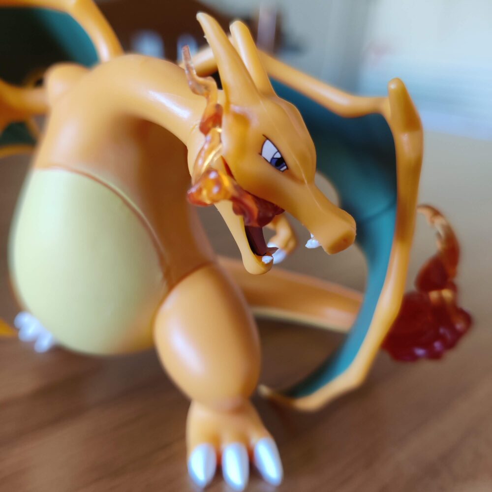 Questa figura di Charizard prodotta da GK è un ottimo esempio di come si possa avere un pezzo iconico, ben fatto e dal grande impatto visivo senza spendere una fortuna. Alta 12 centimetri (misura testa-corpo), cattura perfettamente l’essenza del Pokémon drago-fuoco: imponente, aggressivo e fedele al design classico del Pokédex.